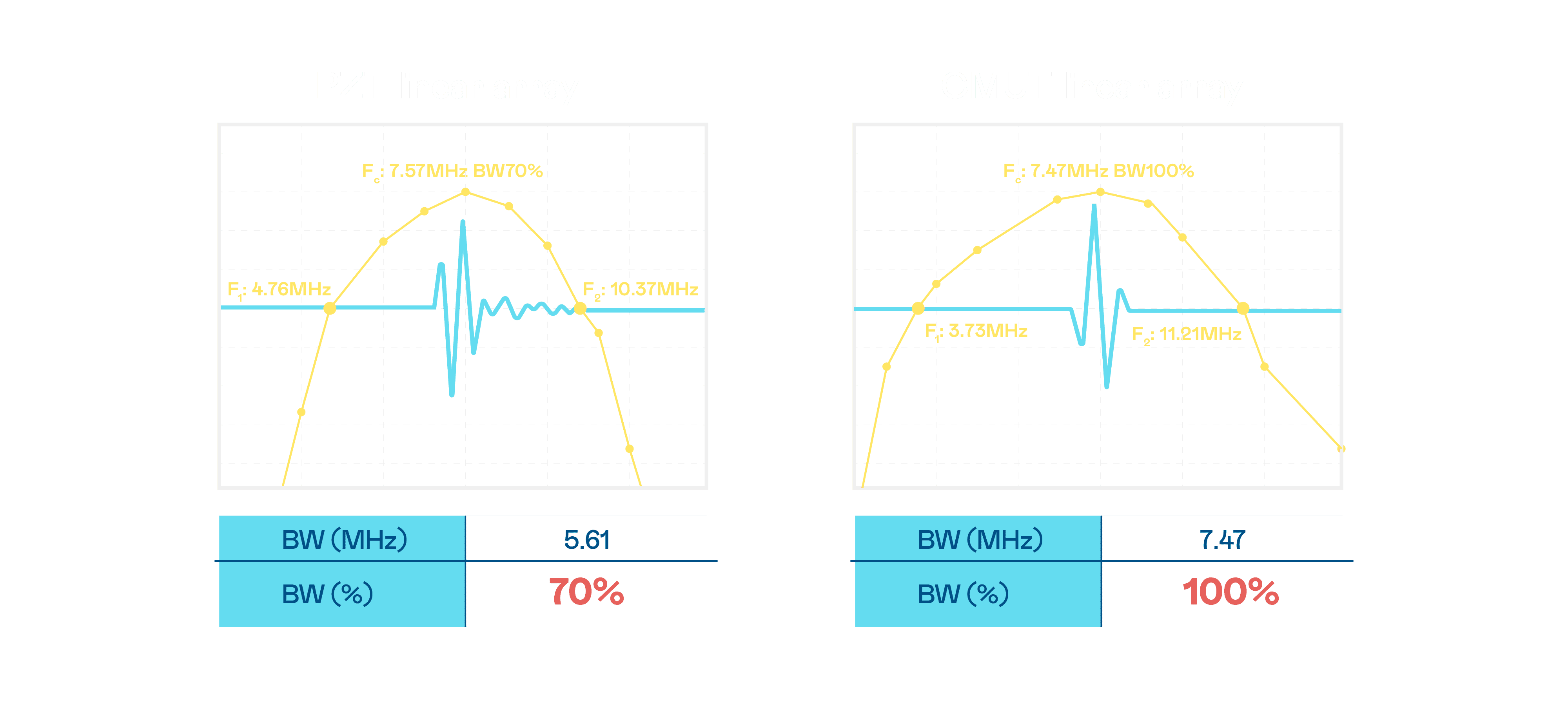 超音波影像的解析度高低,,,,首先取决于探头能发出的讯号频宽。。。。z6mg·人生就是博 CMUT 可提供高清晰的超音波讯号,,,,提供高频宽、、、、高灵敏度、、影像纹理细节更高的超音波影像,,,,协助医护人员缩短影像判读时间及利用精准的医疗影像进行诊断。。