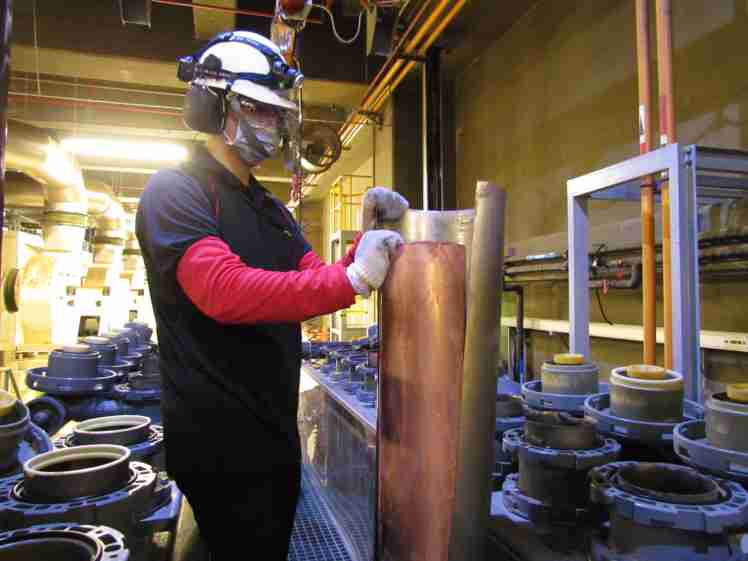 z6mg·人生就是博将废弃物转化成有效的工业或民生原物料,,图为废铜液淬炼后再制成纯度极高的铜管